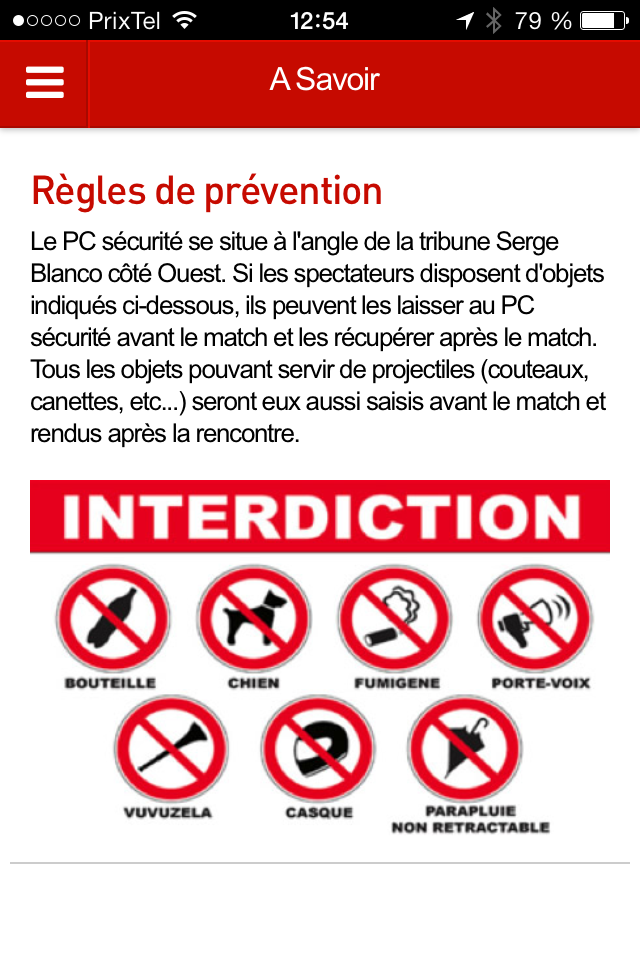 Comme vous pouvez le voir sur les captures d’écran vous y trouverez, bien-entendu, l’actualité du club, le calendrier des matchs, le classement du Top 14, les joueurs, des infos pratiques comme la localisation, comment accéder au Stade, les coordonnées de la billeterie et de la boutique mais aussi toute une partie dédiée aux supporteurs ou encore un petit quizz. Une application bien conçue et très complète.