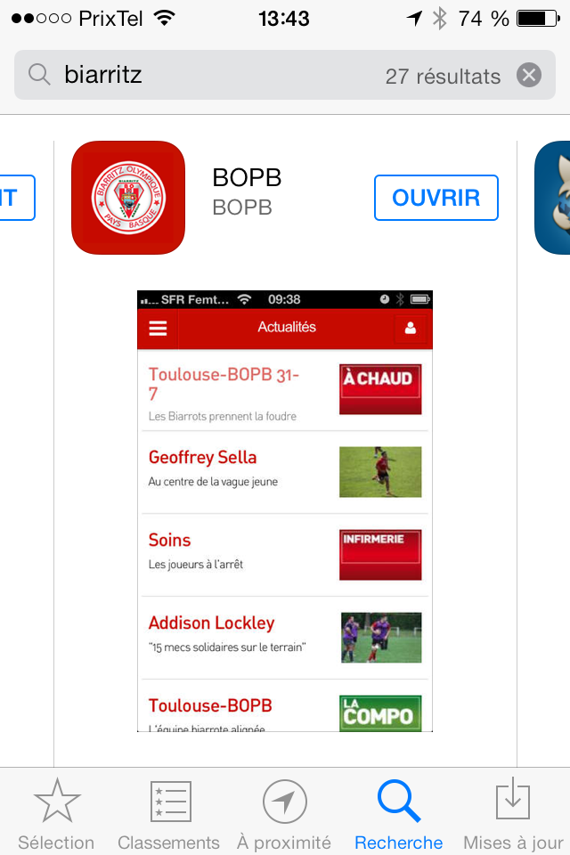 L’application du Biarritz Olympique disponible pour iOS et Android